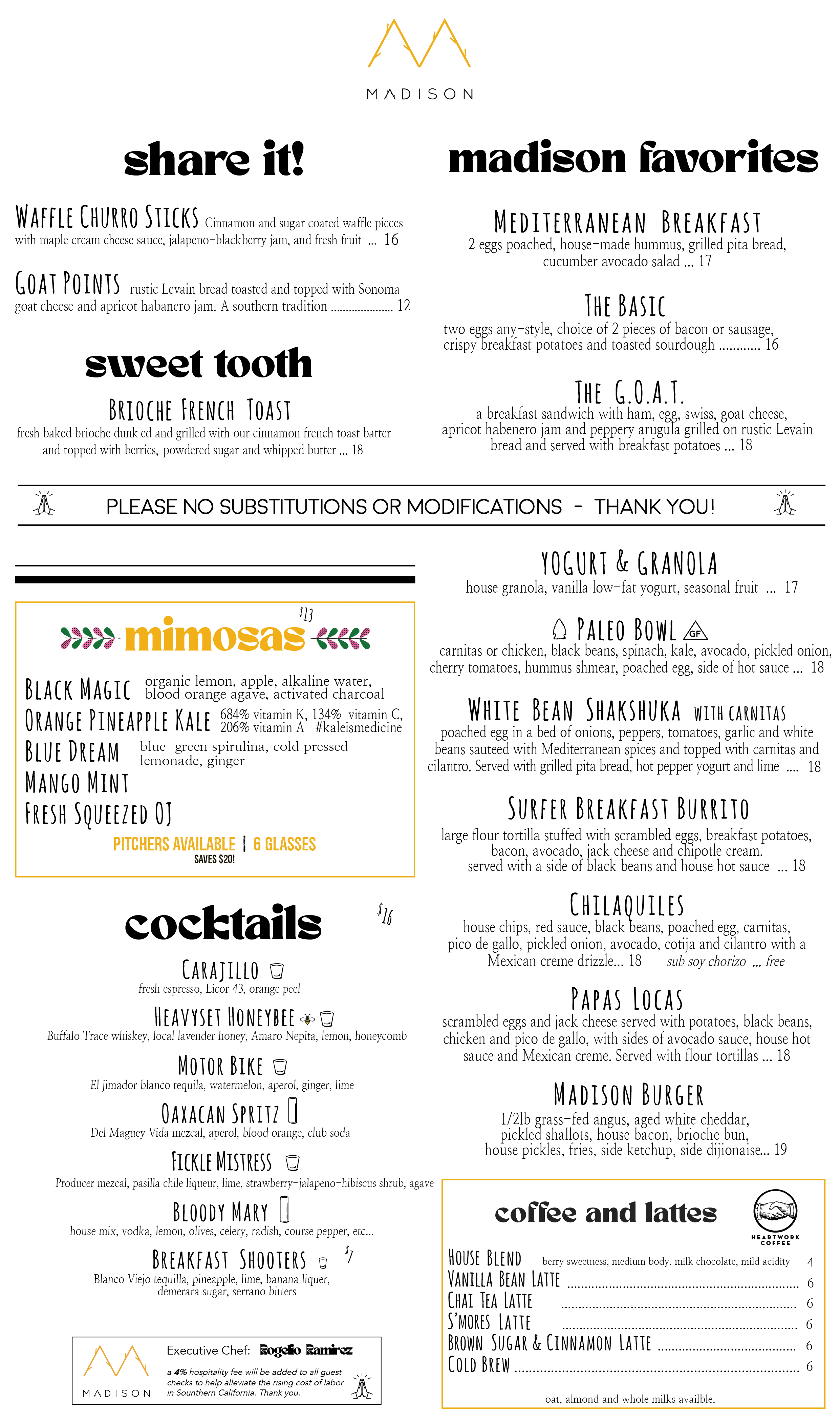 Our sister restaurant, Madi, serves brunch 7 days a week!